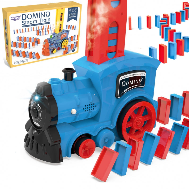 Elektrisks vilciens ar Domino kauliņiem , kam ir skaņas, gaismas un tvaika efekti.