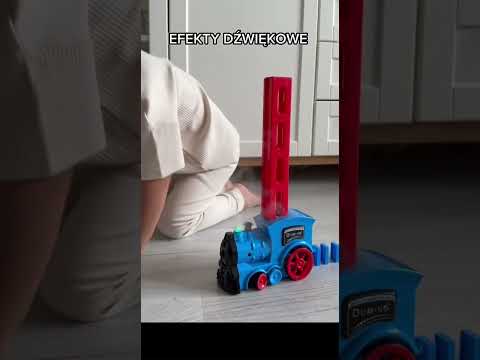 Piepildiet vilcienu ar domino blokiem, nospiediet pogu un vilciens sāks braukt, izdodot skaņu un automātiski izkārtos blokus aiz sevis domino veidā.