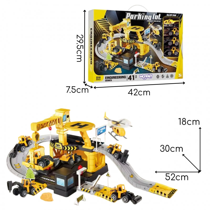 Trīs metāla automašīnas un helikopters ļauj izmantot visas garāžas funkcijas, ļaujot izklaidēties kopā ar brāļiem un māsām vai draugiem, un ļaujot viņiem kļūt par maziem būvētājiem.