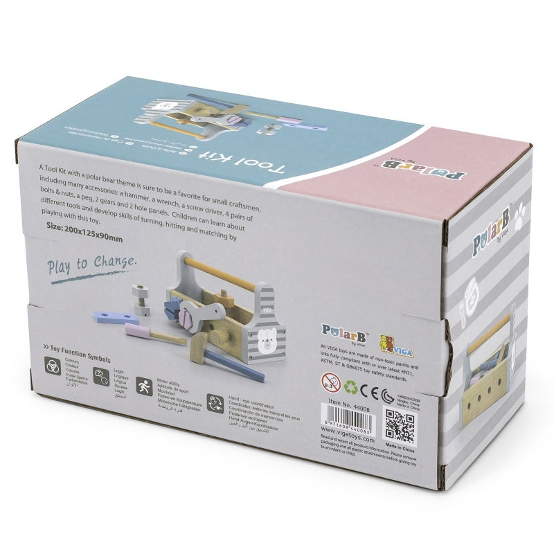 Komplektā ietilpst uzgriežņu atslēga, āmurs, skrūvgriezis, 8 skrūves un uzgriežņi, tapa, 2 zobrati, 2 paneļi ar caurumiem un kaste. Viss nepieciešamai, lai mājās uzturētu kārtību.
