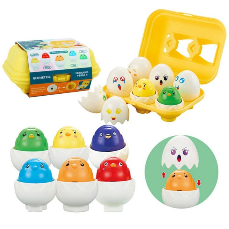 Komplektā ietilpst 6 olas, zem kuru čaumalas slēpjas dažādu formu un krāsu cālēni. Uzdevums ir savienot visas daļas.