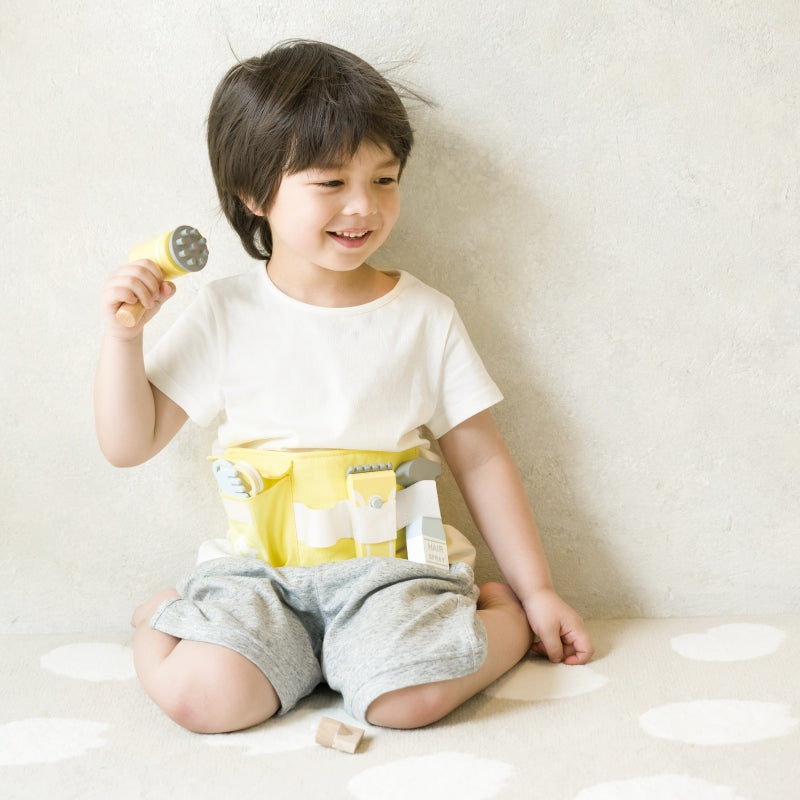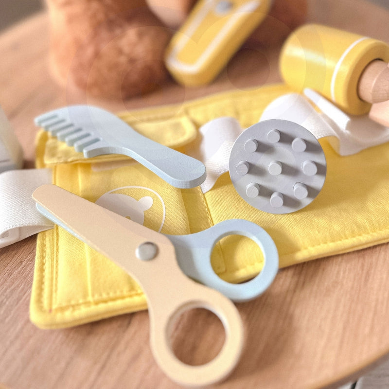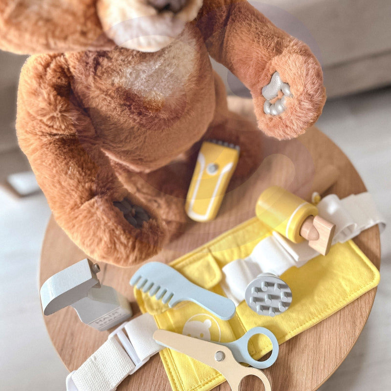Koka rotaļlieta Frizieru piederumu komplekts ar jostu bērniem no 3 gadiem.
